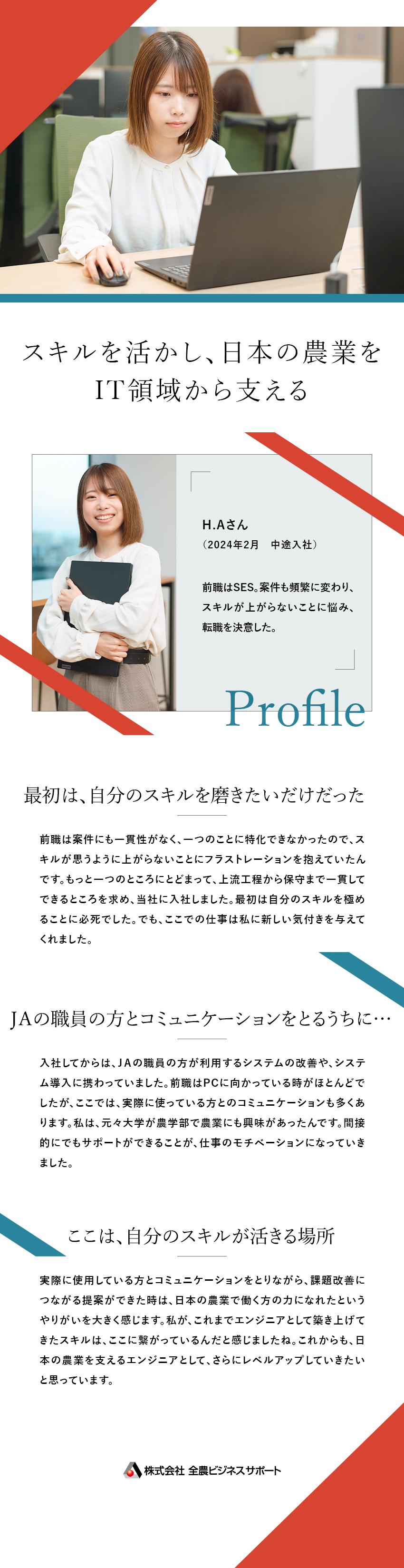 JA全農グループの社内SE/在宅勤務あり/賞与年3回/残業少