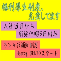 ※入社初日から有給休暇付与(5日)さらに半年経過後5日付与
