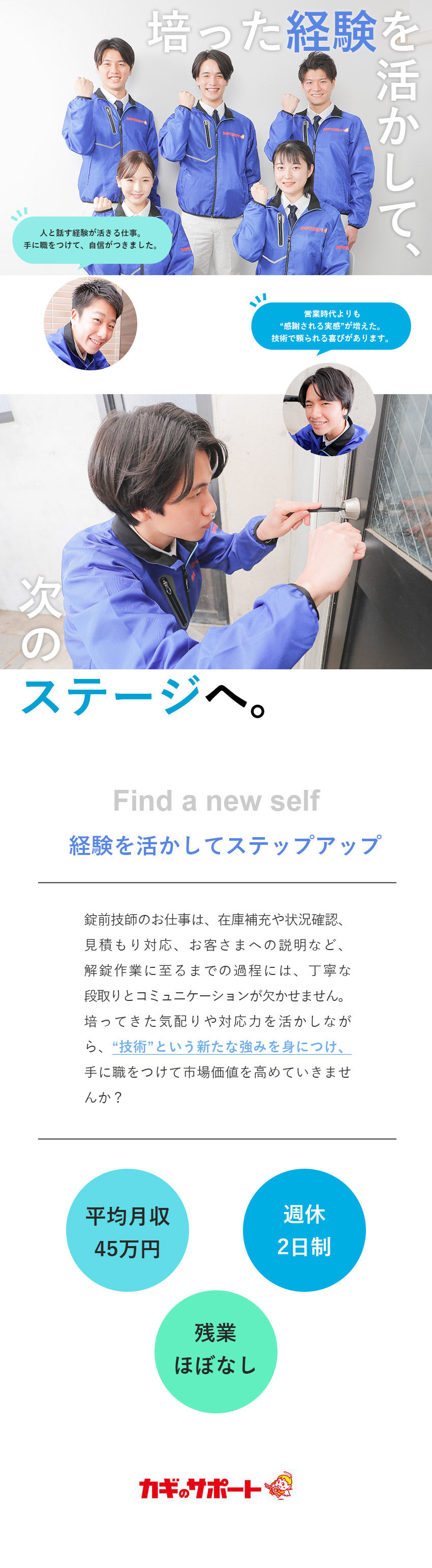 NEW未経験歓迎の錠前技師/万全の研修で安心/平均月収45万円