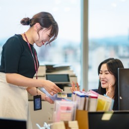 社内外問わず、様々な人とコミュニケーションを取る仕事なので、人と話すことが好きな方は向いていると思います。明るい挨拶ができる方なら活躍できますよ!