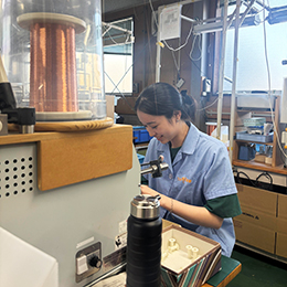 一見シンプルに見える“銅線を巻く”工程も、冷熱への強さなど特性を左右する奥深い技術の世界。自らの手で高品質な製品を生み出す誇りと達成感を味わえるでしょう。