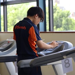 スポーツ以外に、ジムの器具のメンテナンスも実施。運動が好きな人すべての安全を守る大事な仕事です。