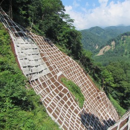 当社が担っているのは、山の地すべりや落石、土石流などを防ぐための工事。