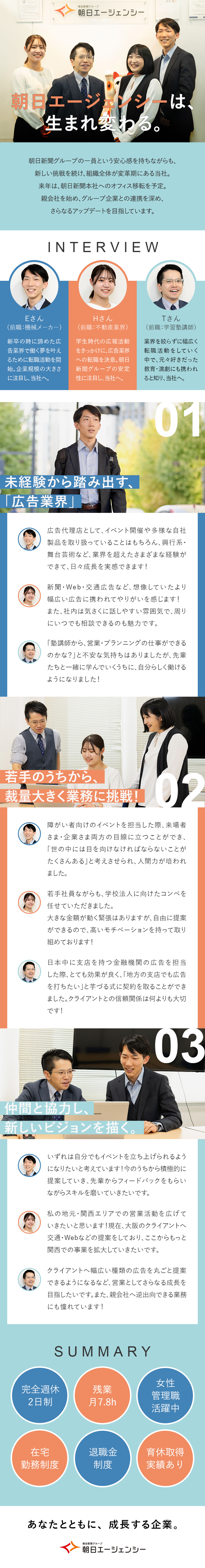 朝日新聞グループの広告営業/未経験歓迎/残業月7.8h