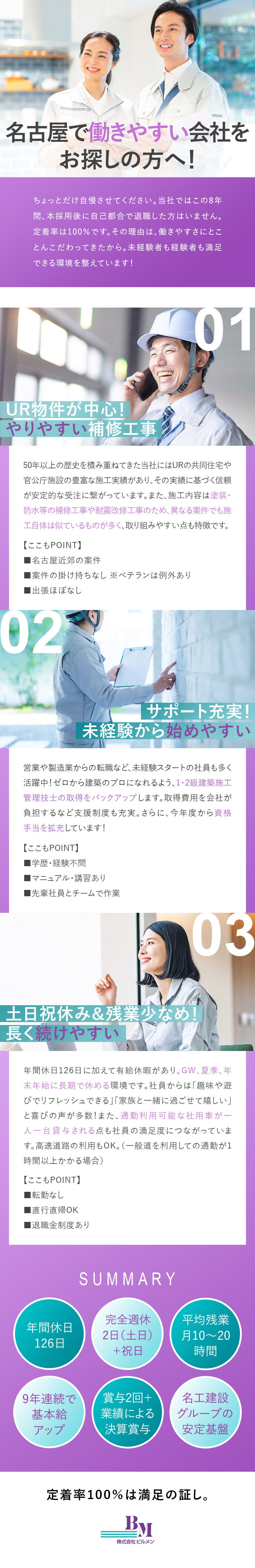 定着率100%の施工管理/未経験歓迎/土日祝休み/残業少なめ