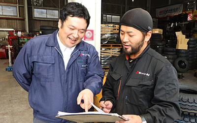 フォークリフトやトラックのタイヤ・ホイールを中心に提案。働きながら自然と知識が身につきます。