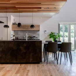 造作キッチンや洗面台など、手仕事の温もりが感じられる空間が魅力です。