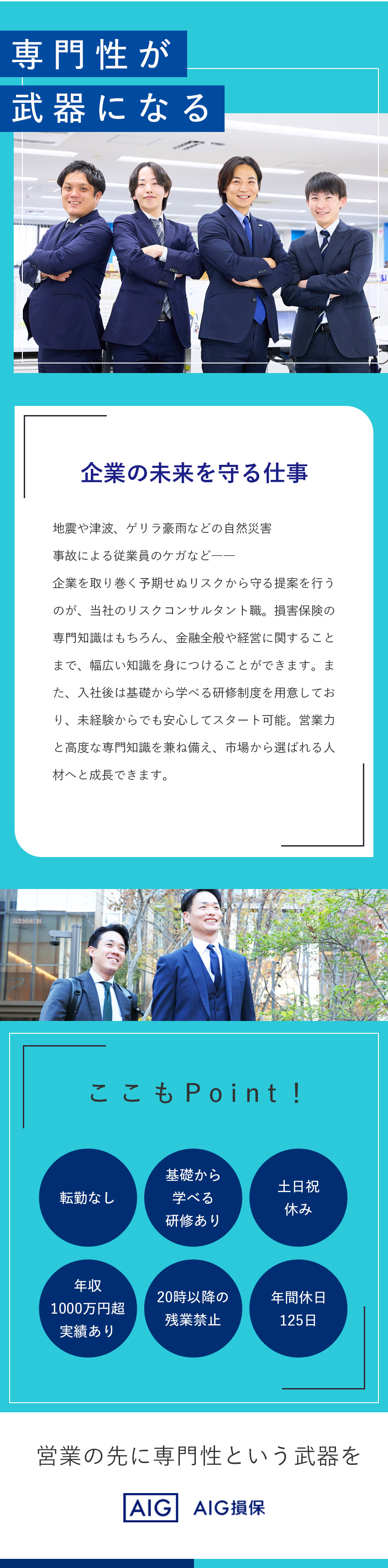 リスクコンサル法人営業/研修充実/年休125日/全国転勤なし