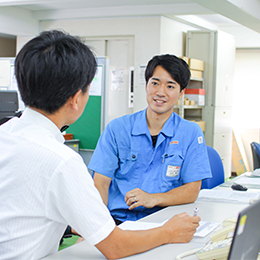 未経験でしたが話し好きな性格や、過去の工場勤務経験も活かせると思い興味を持ちました。訪問先で不明点があれば電話ですぐ聞けたり、難しい修理は同僚と一緒に行うことも。いろんな人に学び成長を実感しています。