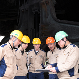 工場では加熱炉で金属を溶かしたり、高温の金属を加工したりしているため、高温の環境です。少しでも負担が少なくなるように、扇風機や空調服を完備、経口補水液の支給など、社員の体調に考慮した取り組みも行なっていますのでご安心ください。自分でも体調管理に気を配りながら環境に慣れていきましょう。