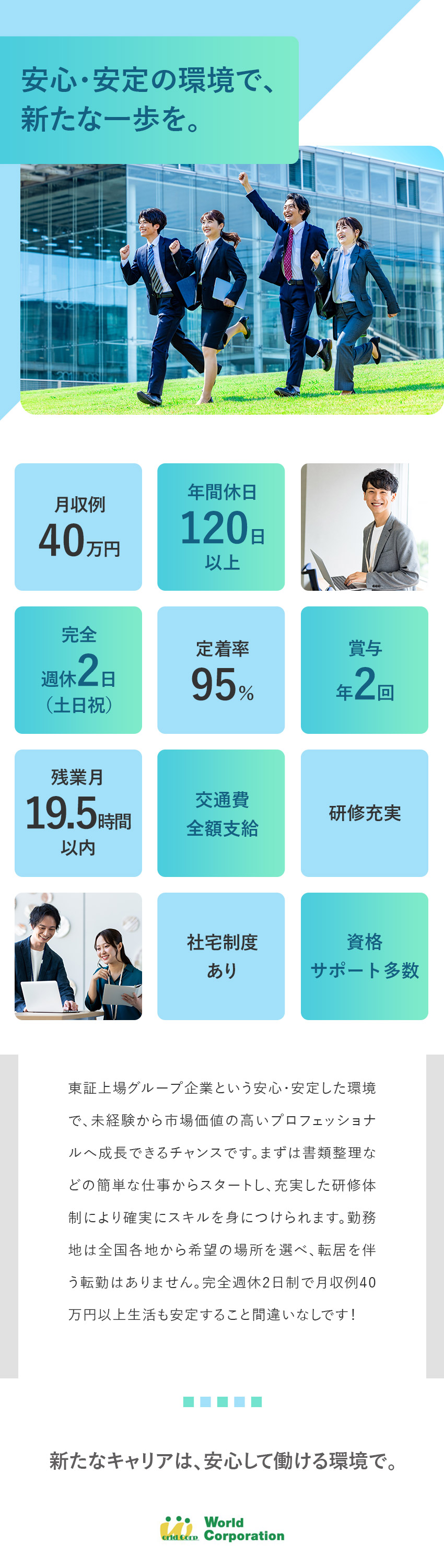 NEW事務系サポート/未経験歓迎/月収例40万円~/土日休/h16