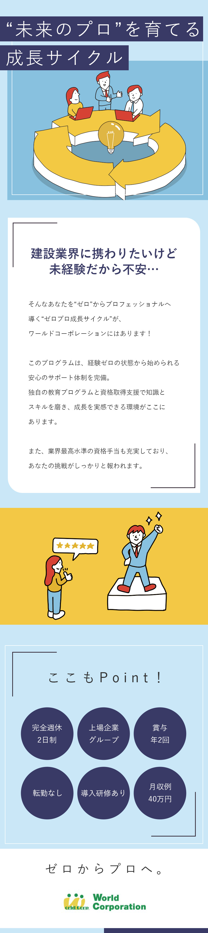 同時に、入社1年目から国家資格が取得できるよう、対策講座・受験に伴う費用支援・合格後の資格手当支給を強化しています!実務経験がなくともチャレンジできる国家資格があるので、ぜひ一緒に取り組んでみましょう!