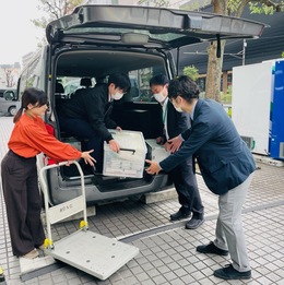 健康診断で使う機材を車に積み込み、現場へ向かいます。