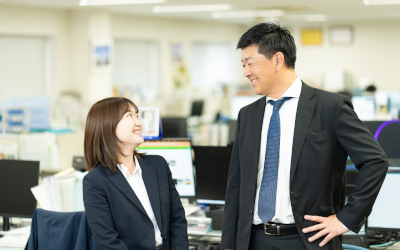 入社後は、東京本社にて約3カ月間の研修を行います。建設業界や営業手法など、基礎的なことから学べるので、未経験の方も安心してスタートしていただけます。配属後は先輩社員の同行などで少しずつ業務を覚え、入社から半年後を目途に自分で顧客を担当していただく予定です。