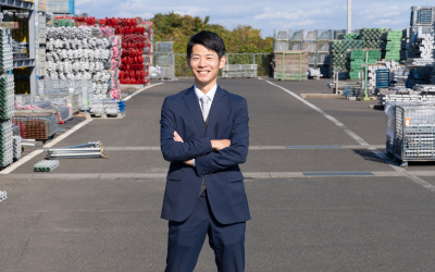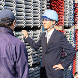 2022年新卒入社の畠山さん。仮設事業部の営業として、仙台支店で勤務しています。導入研修や技術研修などを経て、営業として顧客を担当するようになったのは入社から約2年が経過した頃。売り上げのベースは既存顧客からのリピート受注だと言います。「一つの現場が終わり、お客さまから次も頼むよと言ってもらえた時が、一番うれしいですね」。