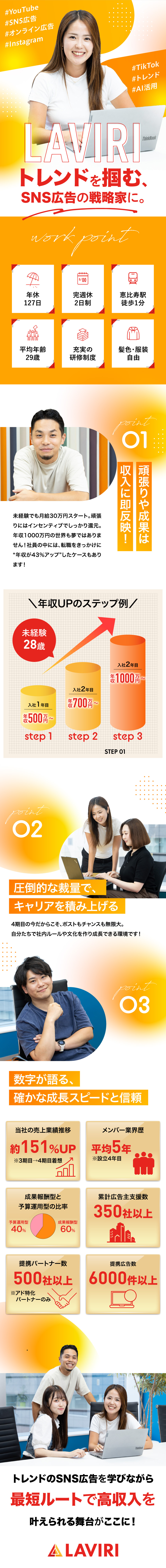 ※経験やスキルにより決定。営業職や広告業界の経験がある方は前職給与を考慮しますので、遠慮なくご相談ください