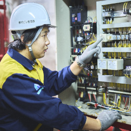 職種を問わず男性社員の50%以上が第二種電気工事を取得。 半数以上が社内研修を経て合格しました!