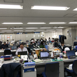 本社オフィスは広々として、ワンフロアーです。オフィスは常に若手社員の活気で溢れています。
