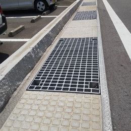 側溝の蓋のことで、誰もが目にしたことのある格子状の鉄蓋。雨水を集水する目的で設置されています。