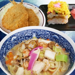 大村湾PAの大人気メニュー「長崎満喫セット」。その土地の名産品を使ったメニューなどを提供しています。