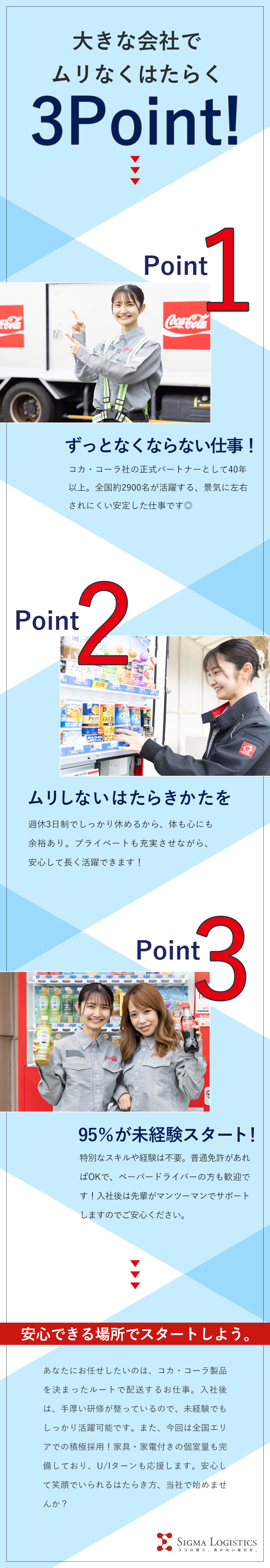 未経験歓迎/週休3日制/コカ・コーラ社正式パートナー/配送職