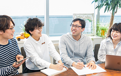 【高いチーム力】全員が得意分野を活かして、お互いに協力し合いながらいいモノづくりを追求しています。