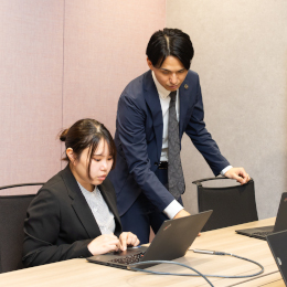 まずは先輩社員と一緒に仕事の流れを覚えていきます。