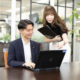 まずはマナーなど基本的なことからお教えします。専任の教育係と一緒に、業界の基礎や営業ノウハウについて学んだあとは、ロープレ研修や先輩への同行を通じて業務の流れをつかんでいきましょう。