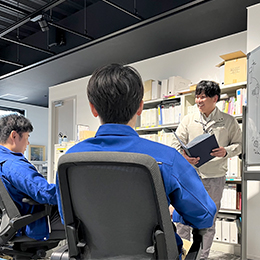 チーム内でのコミュニケーションはもちろん、隣接する板金部門の営業チームとも新しい加工技術や抱えている課題について情報交換を行うなど、会社全体で一緒に成長していける環境です。