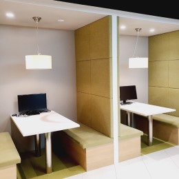 ミーティングスペースも完備。他部署のメンバーとも連携をとりながら仕事を進めていきます。
