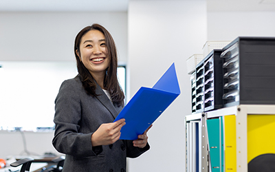 └先輩と一緒に派遣先やスタッフを訪問し、仕事の流れも身につけます。
