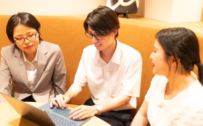 「一人ひとりが裁量権を持ち、創意工夫を凝らしながら仕事に取り組める環境があります。実際に、人事メンバーのアイデアから生まれたことも多く、新卒向けの合同説明会の実施回数や内容を見直して、当社で働く学生アルバイト向けのイベントを新たに企画・実施したり、一次面接免除の特典をつけたことで、応募数の増加に繋がったり…、上司や同僚に相談しながら自分のアイデアをカタチにできる機会が多くあります。人事としてのキャリアの幅を広げたい方にはぴったりです」/採用担当