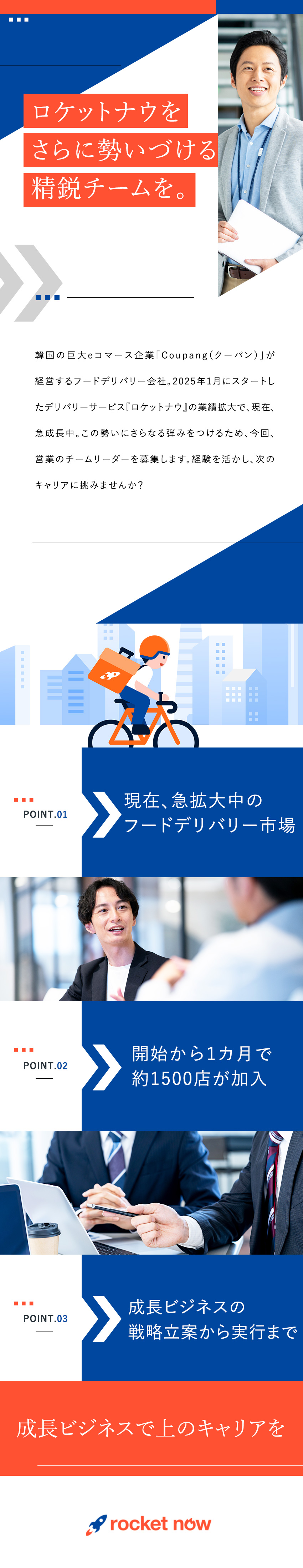 【ボーナスあり】メディア営業/フードデリバリーサービス『ロケットナウ』の営業チームのリーダー職