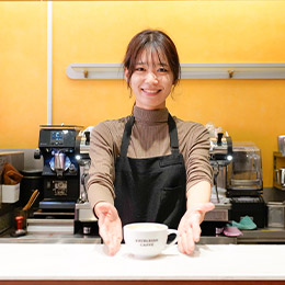お客さまの「また来るね」「おいしかったよ」という言葉を直接もらえることです。ラテアートが上達していく達成感や、それを喜んでくれる瞬間は何度味わっても嬉しいもの。技術の成長だけでなく、「ここに来てよかった」と思ってもらえる接客ができたとき、自分の存在が誰かの小さな幸せにつながっていると実感できます。日々の積み重ねが自信になり、もっと頑張ろうと思える環境です。