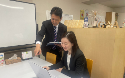 座学での動画研修が終わった後は、先輩社員が同席しお客さま対応スタート!丁寧に教えますので、ご安心を。
