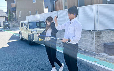 入社後2週間~1ヶ月は、先輩とのマンツーマン研修からスタート!実際に一緒に現場をまわりながら、調査の進め方や交渉のコツを一つひとつ丁寧に学びます。