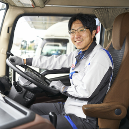 将来のことを考え、もっと給与面を安定させたいと思い転職を決意。大型車のドライバーは未経験でしたが、入社前に資格を取得し、その後も業務に慣れるまでしっかりサポートいただいたのが心強かったです。