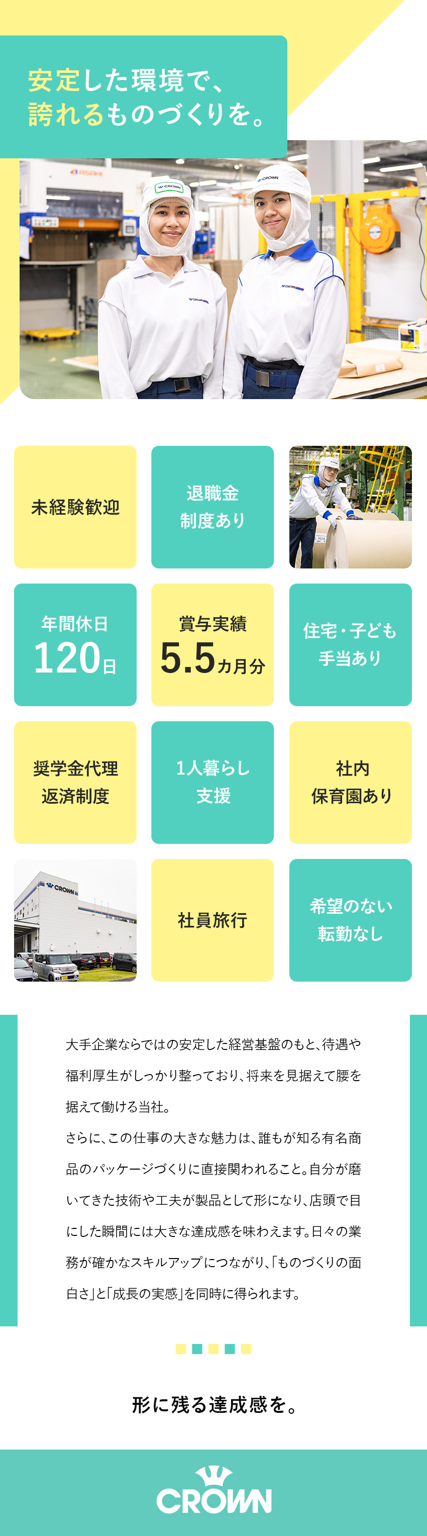 パッケージ製造スタッフ/未経験歓迎/賞与5.5カ月/土日祝休