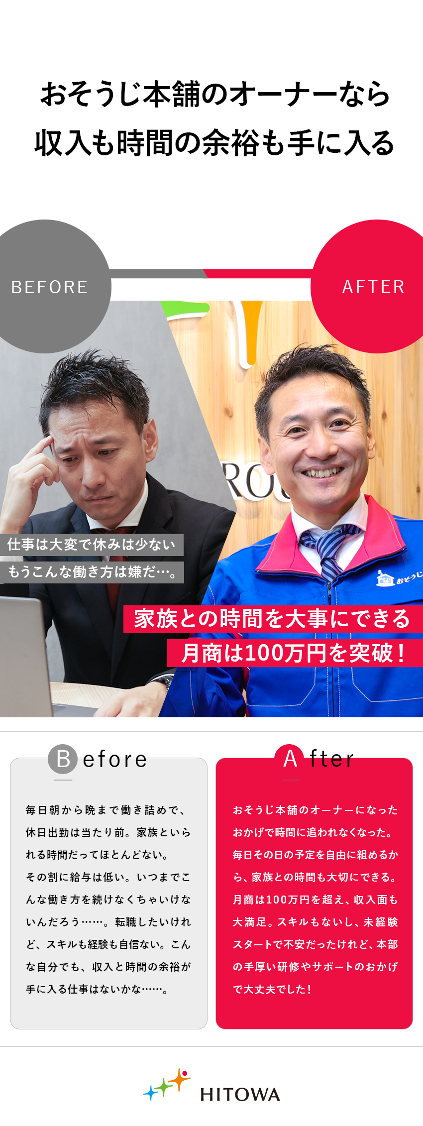 面接確約/年商1000万円実績あり!おそうじ本舗FCオーナー