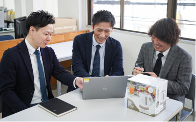 営業部は、営業1課~8課のチームに分かれており、各課に3~5名が在籍。人数を少なくすることで、上司によるフォローも手厚く行えています。(研修制度についてはページ下部参照)
