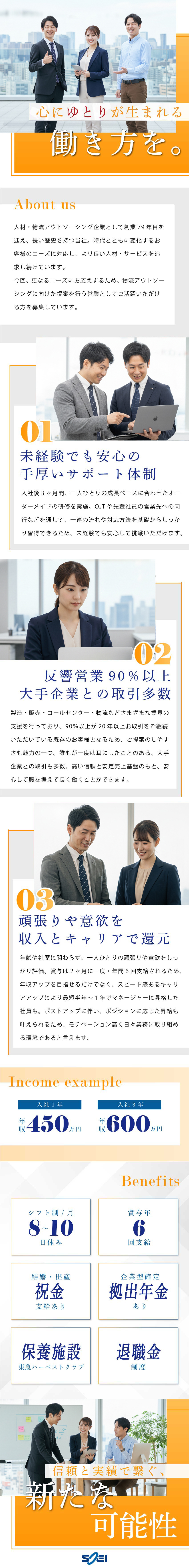 人材サービスの営業/物流のアウトソーシング提案/賞与年6回