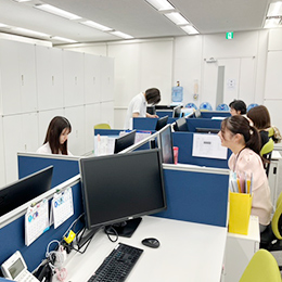 オフィスには20代~60代まで幅広い年齢層の社員が在籍。年齢や役職などの壁なく、仲が良い職場です。