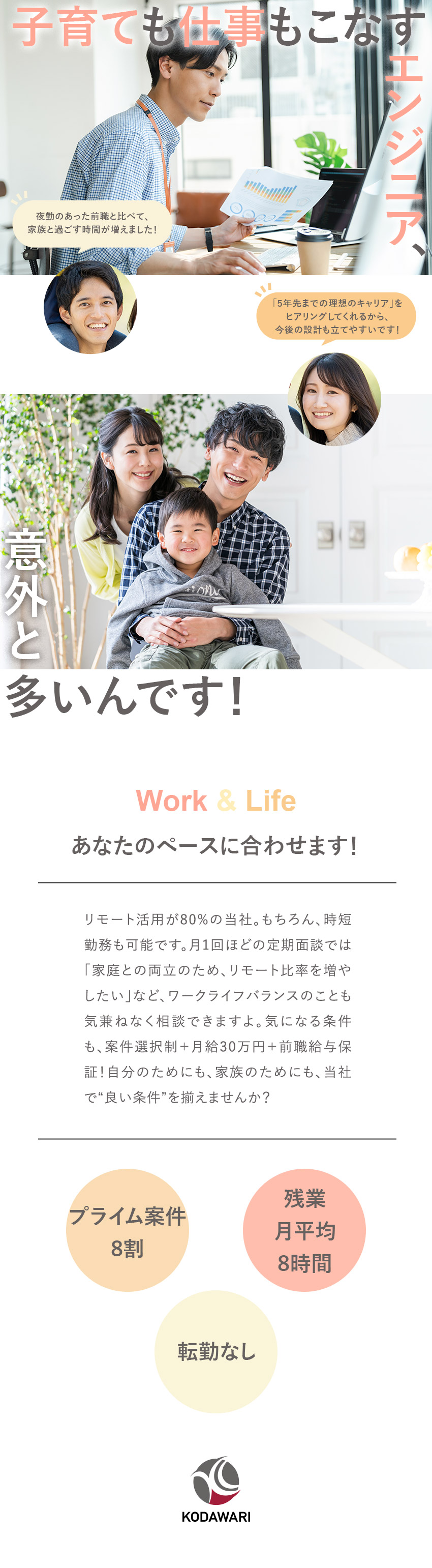 ITエンジニア/子育てエンジニア活躍中/在宅8割/残業月8h