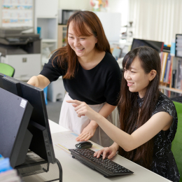 現場で先輩がすぐ側で業務を教えます。「誰も置いていかない」方針のもと、丁寧に業務をレクチャーします。