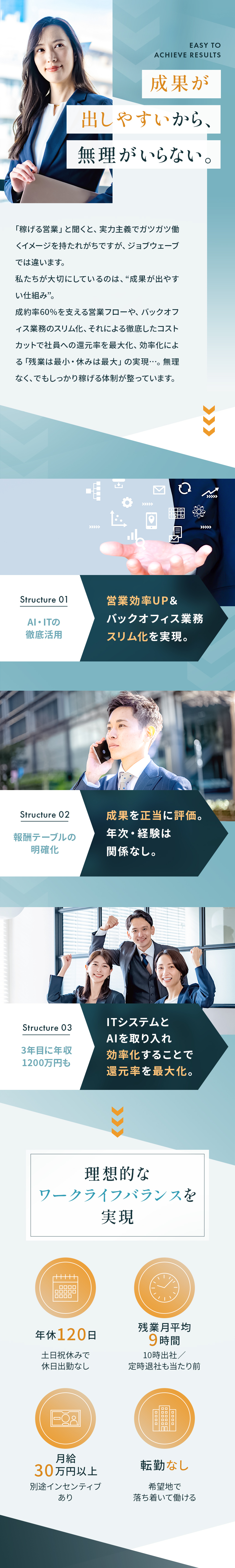 提案営業/未経験歓迎/残業月平均9h/土日祝休/高収入実現可