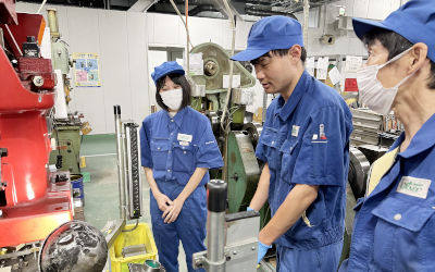 入社後はOJTでひとつずつ業務に慣れていただきます。まずは手作業業務からはじめて、商品を覚えていくことから始めましょう!さまざまな加工機を使用して、金属の加工をおこなっていきます。そのあと、少しずついろいろな工程をお任せしていきます。