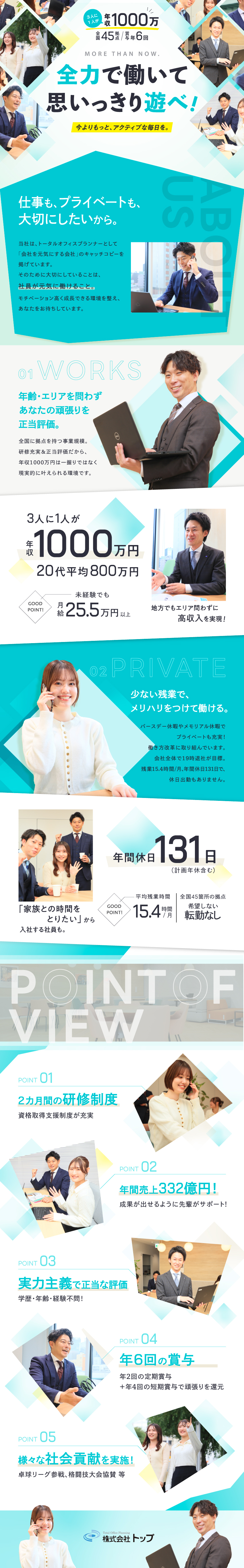 法人営業/年間休日131日/3人に1人が年収1000万円