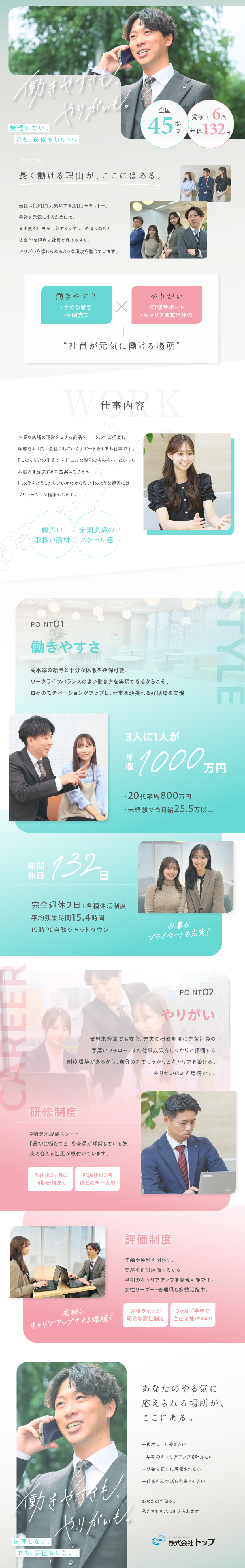 Q.トップの魅力、働きやすさについて教えてください!