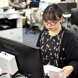 前職は販売職で数字や納期管理には自信がありませんでしたが、業務通して自然と“気づく力”が身につきました。 少人数チームで困ったときも声をかけやすく、みんなでフォローしながら動く良い雰囲気の部署です。