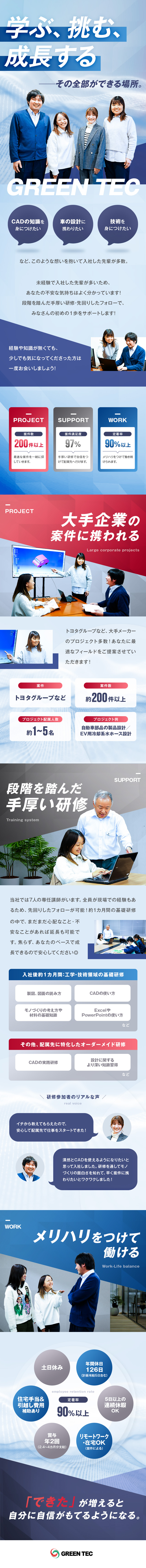 全員が、現場での経験を積んでいるため、配属後まず躓くポイント・不安なことをよく理解しています。そのため、先回りしたフォロー・手厚い研修であなたの挑戦を応援します◎